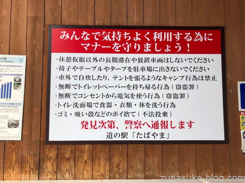 その際は無理な車中泊はせず、道の駅にある看板の指示に従いましょう。