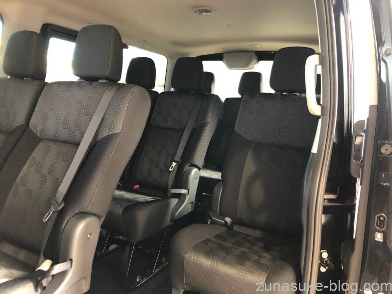 DXは簡素でキャンピングカーベースにはいいかもしれませんが、ファミリーカーとして考えるならリヤヒーターや分割式ヘッドレスト付のシートは必須。