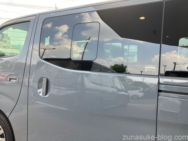 助手席側オートスライドドアをオプションで付けると、助手席側の小窓は無くなってしまいます。