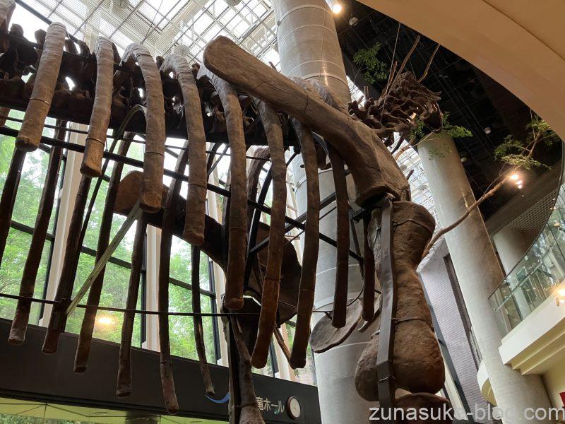 館内は非常に広く、まず目に飛び込んでくるのが実物大の恐竜骨格標本。