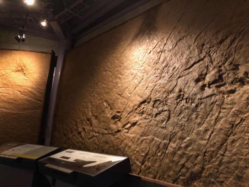 見た目にはあまり分かりませんが、ここには大小合わせて50個にも及ぶ恐竜の足跡が残されています。