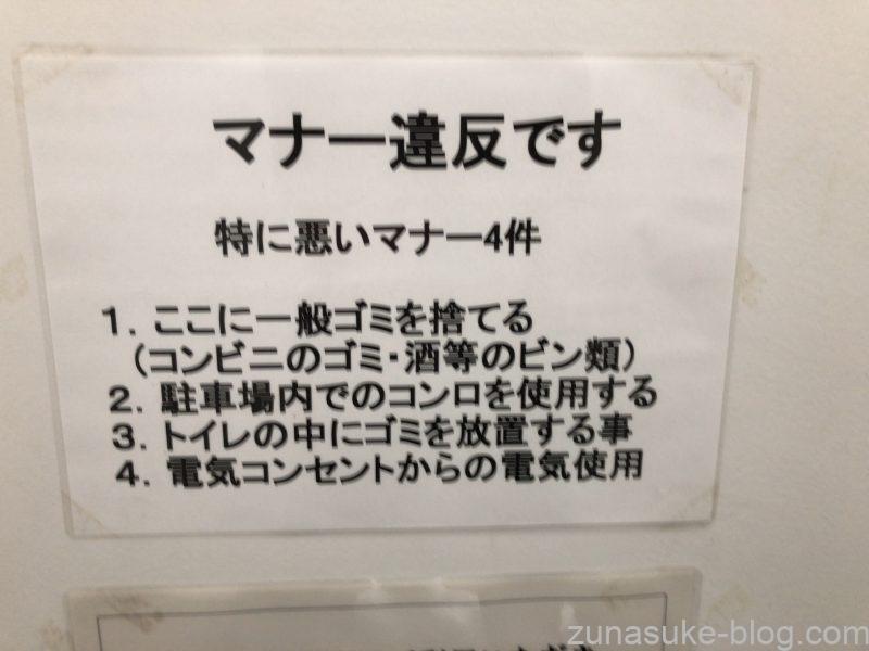 近年では車中泊客のマナー低下により、道の駅での車中泊については「車中泊お断り」や「RVパークをご利用ください」