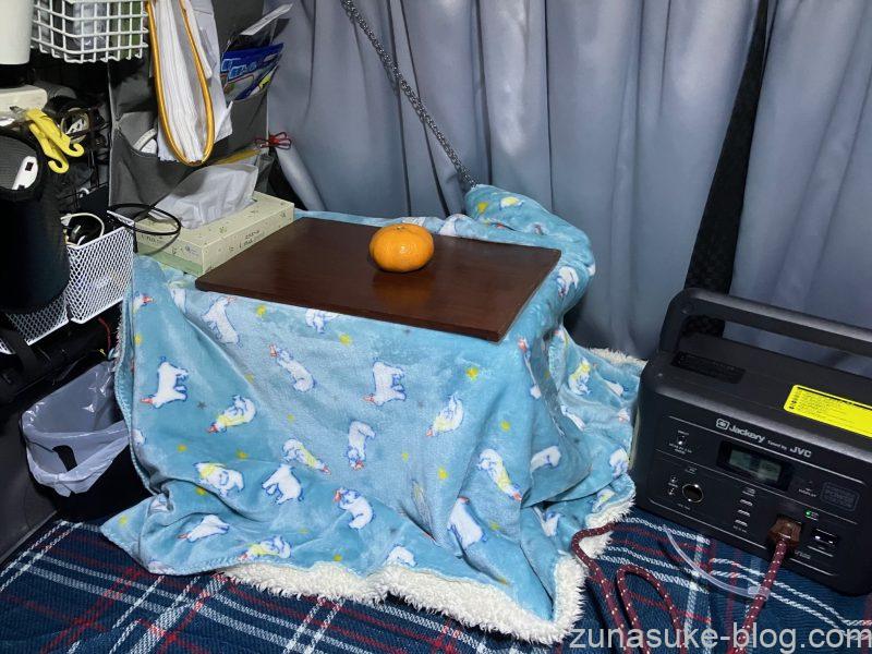 寒い季節の車中泊キャンプでは、温かい寝具やポータブルヒーターが必要です。