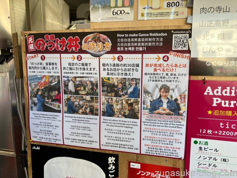 ここでは、食券を買って市場内の店を回り、自分好みの海鮮丼を作る「のっけ丼」が楽しめます。