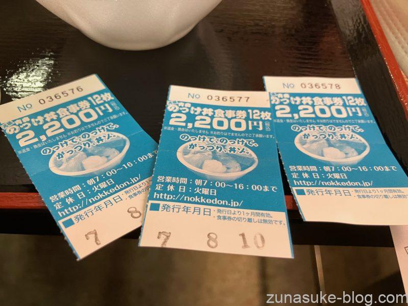 のっけ丼の食券は12枚つづりで税込み2,200円。
