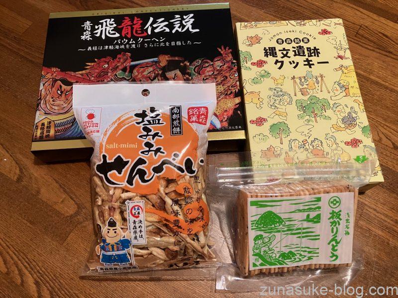 1階のアスパム物産館でのお土産は、リンゴスイーツ、ねぶたグッズ、帆立加工品が人気。